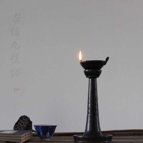 家居饰品^烛台^^^江西 景德镇^陶瓷酥油灯老式全手工粗陶香油灯古风烛台影视道具茶室侘稼件