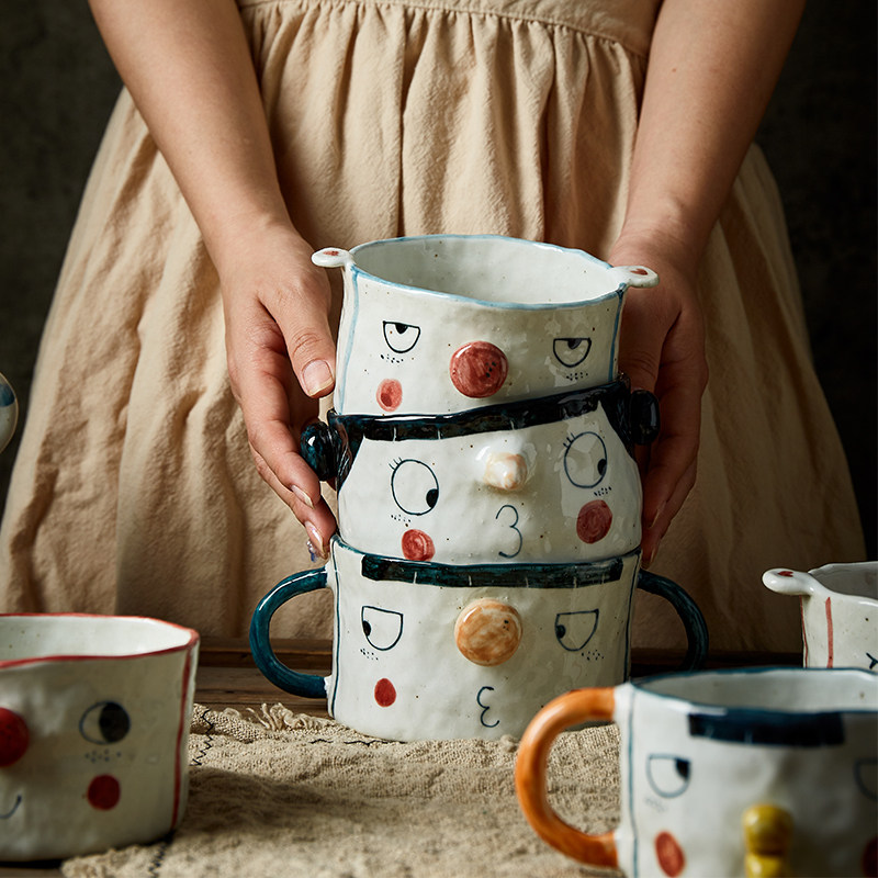 陶瓷燕麦早餐杯子双耳碗可爱卡通手工饭碗家用小碗原创个性马克杯热门设计联盟服务商