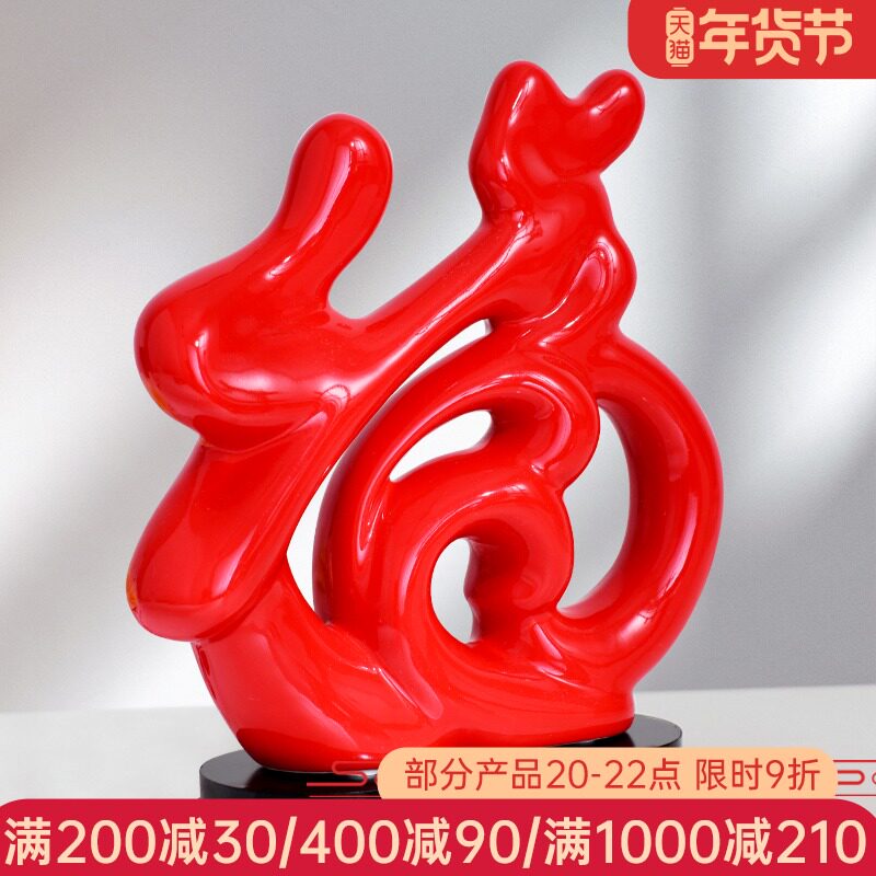 现代简约家居卧室陶瓷福字小摆设客厅酒柜装饰品招财摆件结婚礼物热门设计联盟服务商