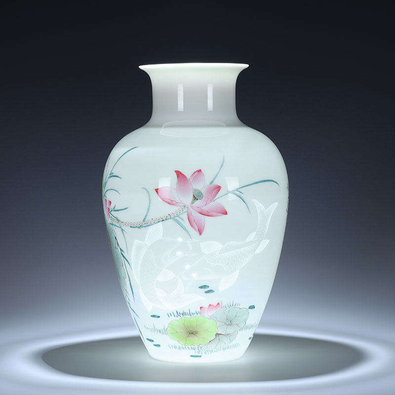 名师手绘景德镇陶瓷花瓶薄胎玲珑工艺品书房办公室桌面装饰品摆件热门设计联盟服务商