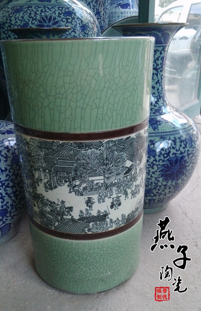 超值 景德镇陶瓷 纹片清明上河图书画筒 卷轴缸 字画筒装饰大花瓶热门设计联盟服务商