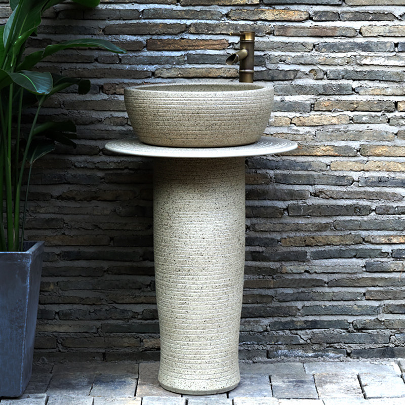 立柱式洗脸盆别墅花园阳台落地一体洗手盆室外庭院户外陶瓷立柱盆