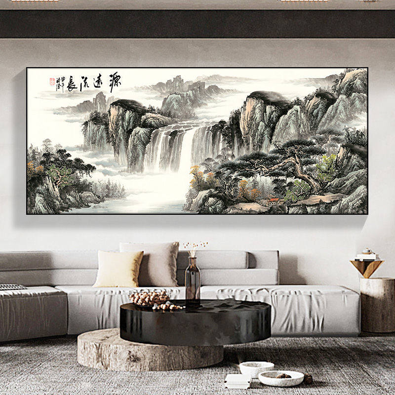 新装饰画横幅画背景墙招财办公室沙发挂中式山水客厅画中国风国画热门设计联盟服务商
