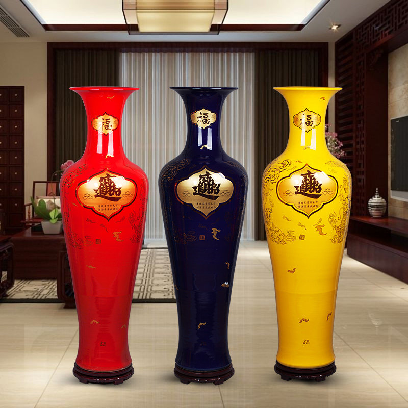 新品景德镇中国古风陶瓷居家装饰客厅风水摆件瓷瓶纳福落地大花瓶热门设计联盟服务商